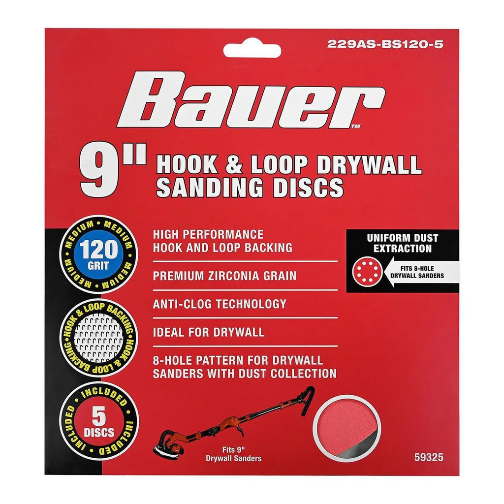 Discos de lija para paneles de yeso BAUER de 9 pulgadas, grano 120, con cierre de velcro, paquete de 5 unidades