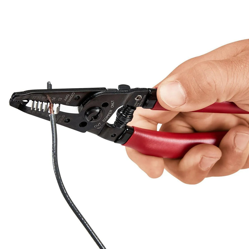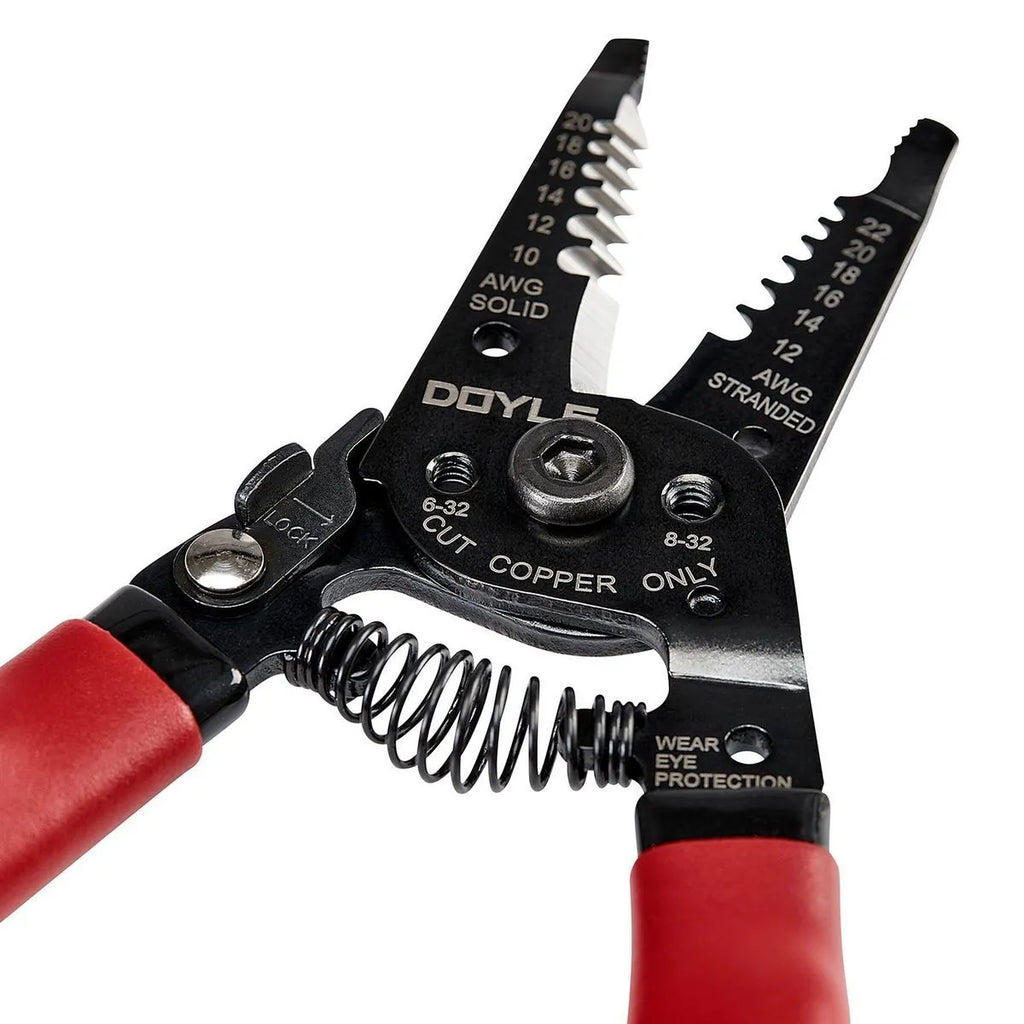 El pelacables y cortacables profesional DOYLE™ está diseñado para ofrecer un rendimiento superior en pelado y corte. Permite cortar y pelar fácilmente cables sólidos de 10 a 20 AWG y cables trenzados de 12 a 22 AWG. El filo de alta resistencia también corta tornillos de 6-32 y 8-32 con precisión. Las marcas grabadas con láser, fáciles de leer, facilitan la selección del tamaño adecuado. Los pelacables y cortacables profesionales DOYLE™ están DISEÑADOS PARA DURAR GENERACIONES™, y cuentan con una garantía de por vida del 100 %.