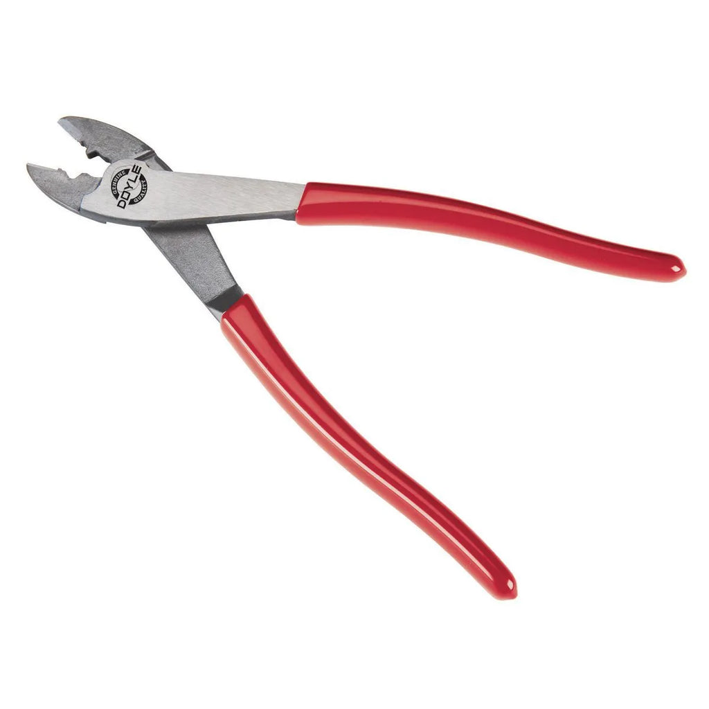 La herramienta de engarce profesional DOYLE™ aprovecha un diseño de alta palanca para realizar engarces rápidos y permanentes en terminales. La matriz de engarce 2 en 1, de alta resistencia, es capaz de trabajar con terminales aislados y no aislados. Los bordes de corte endurecidos sujetan el cable para un corte suave y controlado. Empuñaduras de vinilo resistentes al aceite.