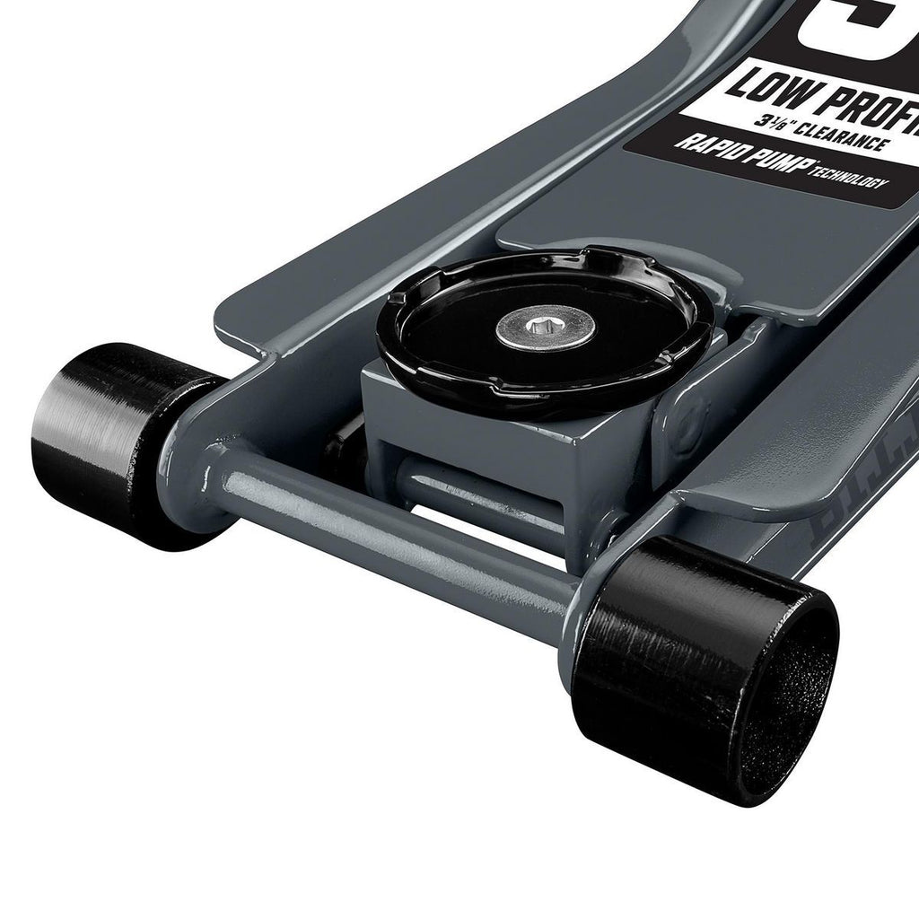 Este gato hidráulico de 3 toneladas de alta resistencia consigue elevar vehículos casi 2 pies del suelo. Su perfil extra-bajo llega debajo de la mayoría de los coches . La tecnología RAPID PUMP® de doble pistón levanta la mayoría de las cargas de trabajo en sólo 3-1/2 bombeos.