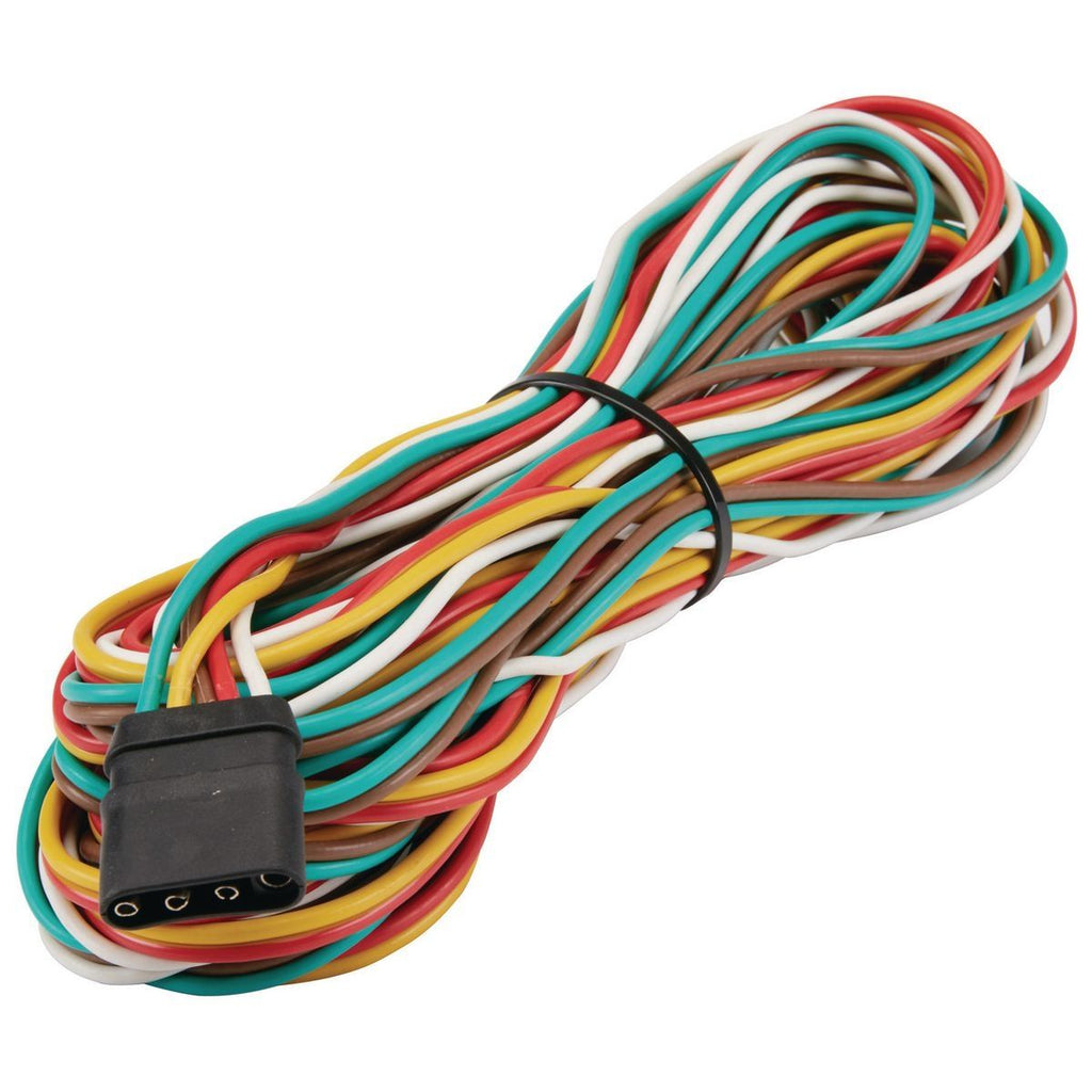 Este arnés de cableado es un kit completo para cablear las luces de parada, giro y marcha del remolque. El kit de arnés de 25 pies incluye dos arneses de cableado con cuatro conectores planos, conectores de empalme y todo el hardware de montaje necesario para la conexión básica del remolque.