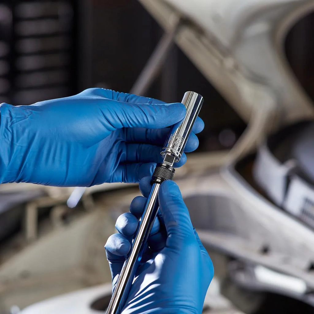 Este juego de barras de extensión con liberación rápida es ideal para el reemplazo de bujías u otras aplicaciones que requieren mayor alcance en espacios reducidos. Los dados se bloquean en la barra de extensión, evitando que se caigan dentro de electrodomésticos, motores o maquinaria. Con solo presionar el mecanismo de liberación rápida, el dado se desprende fácilmente. Están fabricadas en resistente acero cromo vanadio con triple recubrimiento de cromo para resistir la corrosión.